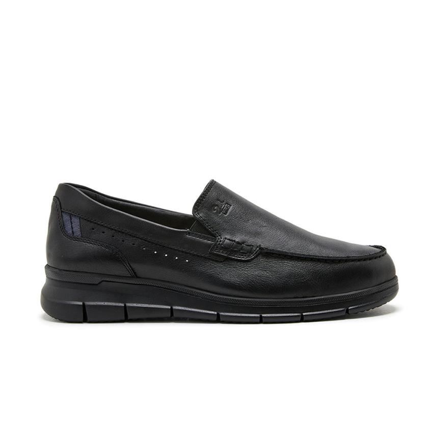 Mocasín hombre diseñado en piel alta selección color negro con detalle perforado en lateral. Elásticos para mejorar la comodidad del calzado, bordón delantero y marca grabada. Incluye plantilla extraíble, suela en EVA ultraligera de 4 cm. y la mayor comodidad al caminar. Es un básico en toda regla. Color: Negro Composición: Piel alta selección Tipo de suela: EVA The Lightest Altura de tacón: 4 cm Tecnología: Air Ring Plantilla extraíble.